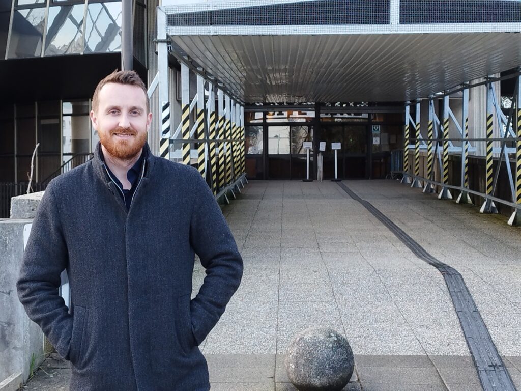 Arnaud Le Bourdais sur le parvis de la Cité judiciaire de Rennes. Crédit : Romain Blanchard/PressPepper