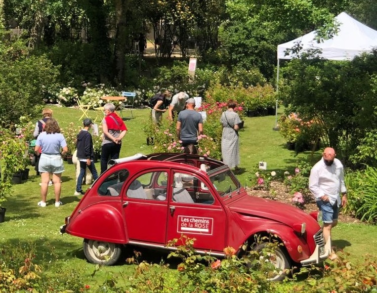 L’été, une excursion en 2CV personnalisée de la pépinière à quelques pas de la roseraie