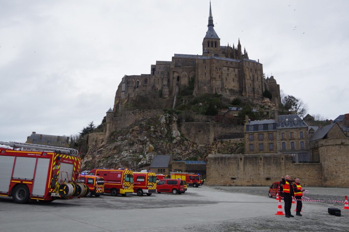 Passage de la flamme Olympique. Les secours s’entrainent au Mont Saint Michel.
